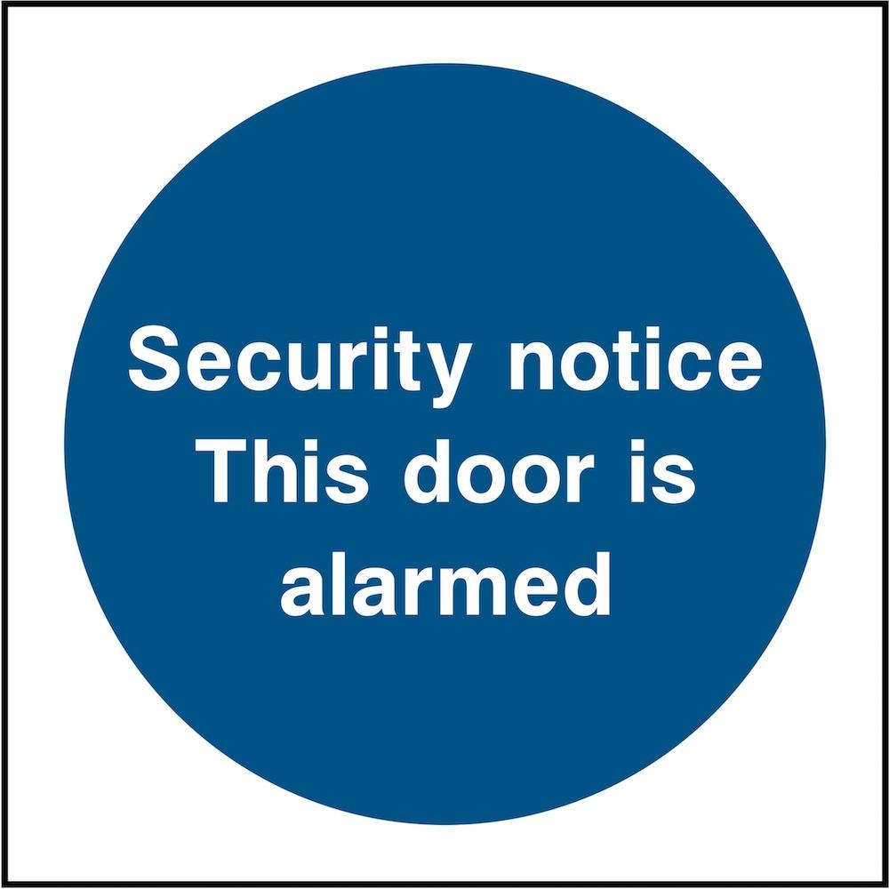 Make sure your premises remain as secure as possible by installing clear security signs. This door sign reduces the risk of unauthorised entry by stating the door has an alarm fitted.