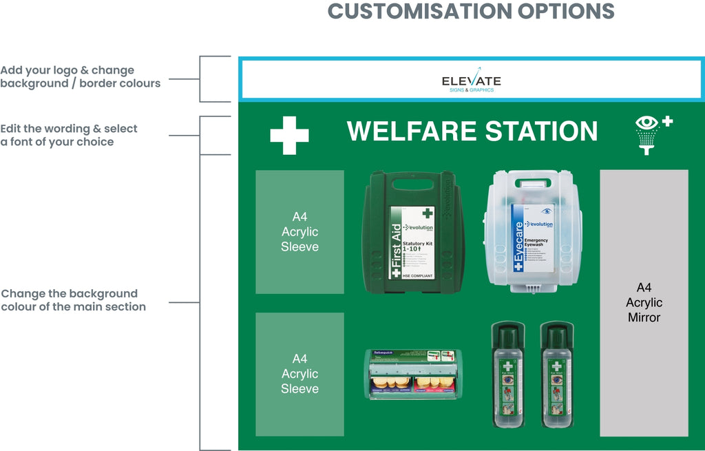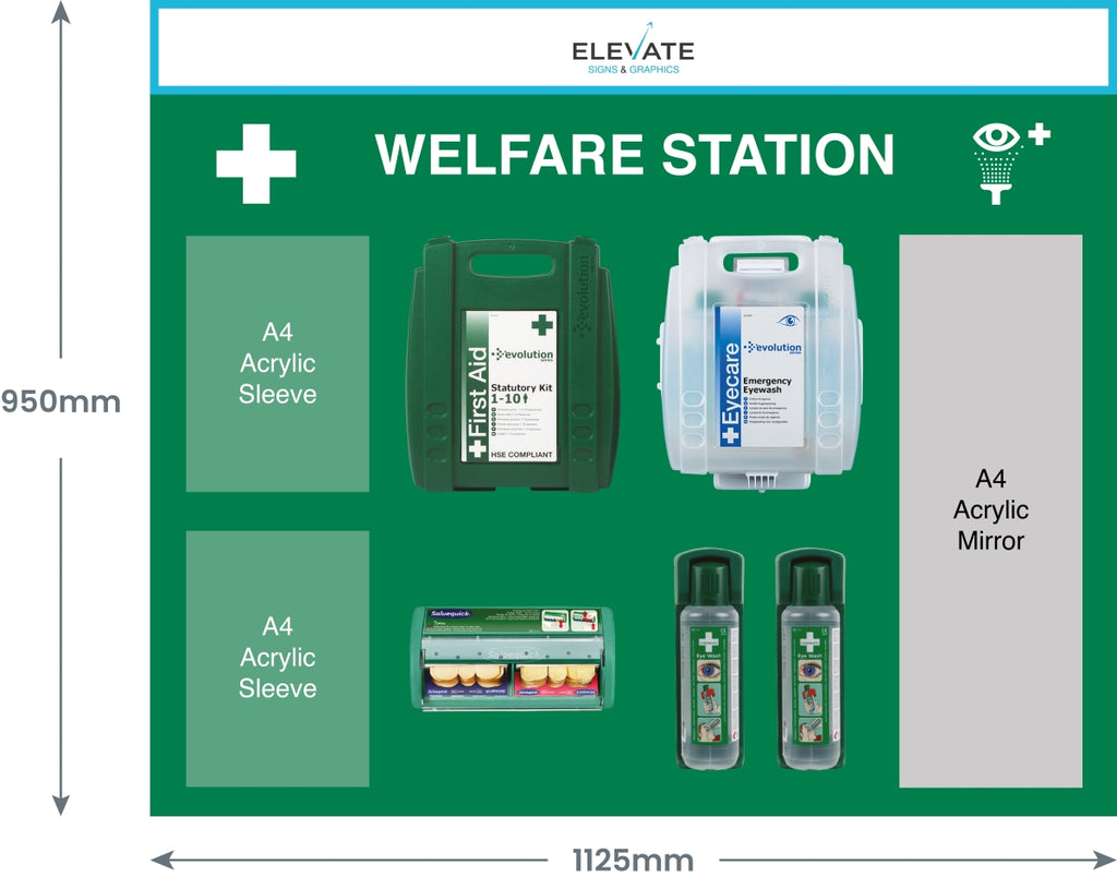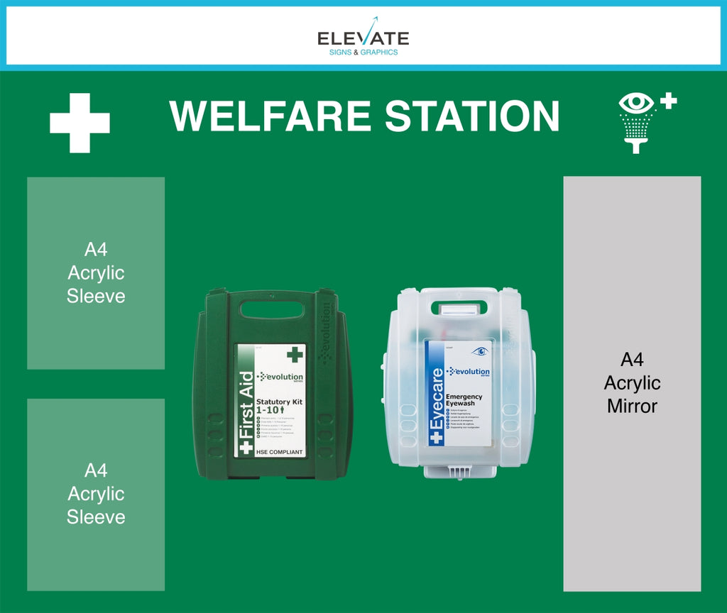 Containing first aid and eye-wash kits, as well as two transparent A4 poster sleeves and a sizeable mirror, workforces will be able to gain a full understanding of first aid policies and correctly apply any remedies.