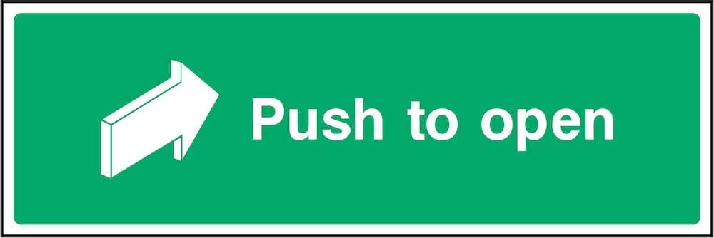 Sign text: Push to open.