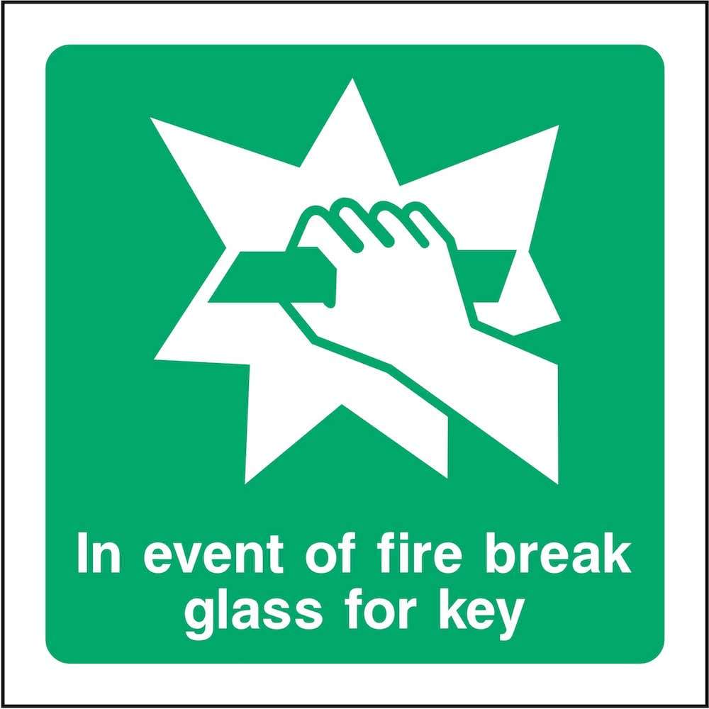 Sign text: In event of fire, break glass for key.