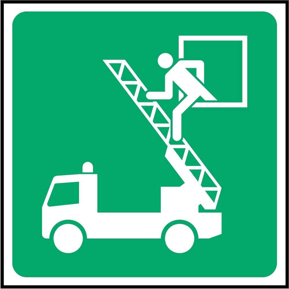 This image-only sign makes sure that all stakeholders are aware of the location of emergency escape windows, which can be accessed by rescue.