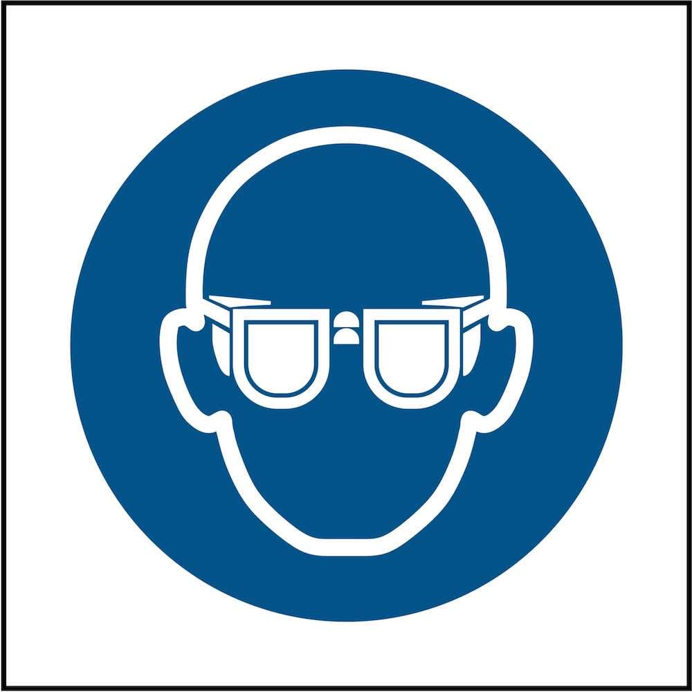 This image-only, mandatory PPE sign, acts as a reminder to ensure that all stakeholders are aware they should be wearing goggles, to protect their eyes from potential hazards.