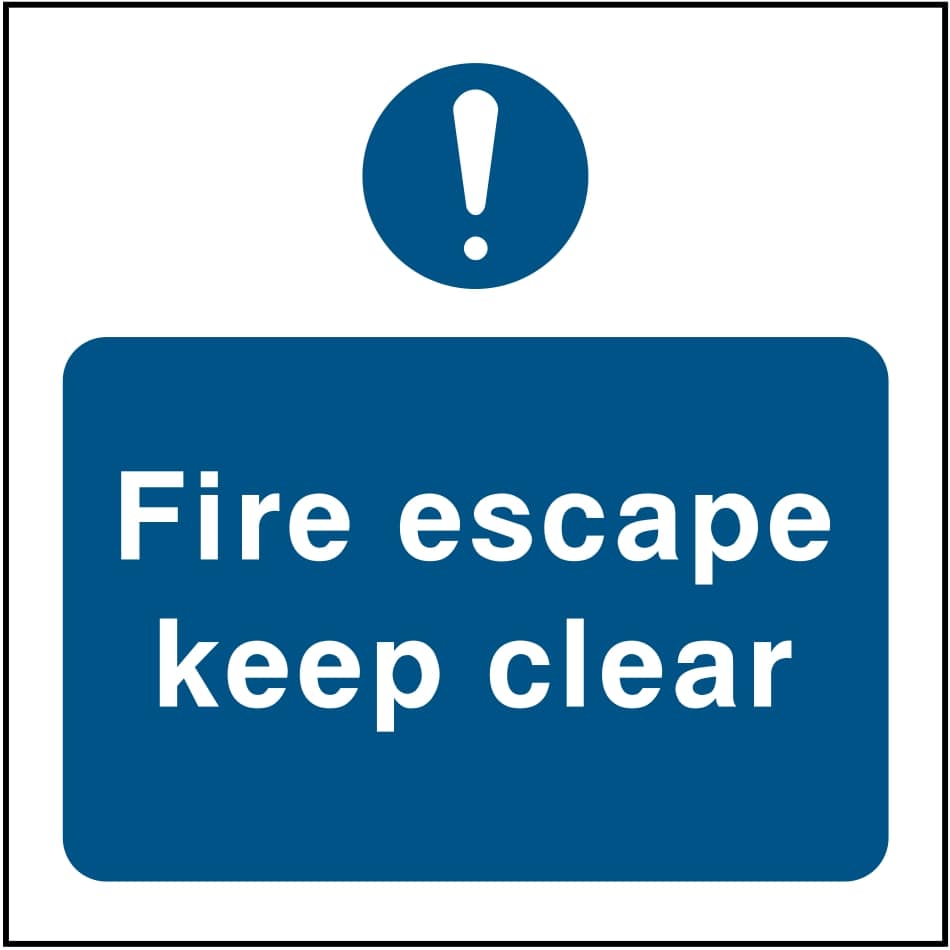 Implement best safety sign practices in order to ensure your workforce, and any visitors, are able to exit premises quickly, in the event of an emergency. This fire safety sign, consisting of an image with text, will help to make sure fire escapes are kept clear of potential hazards.