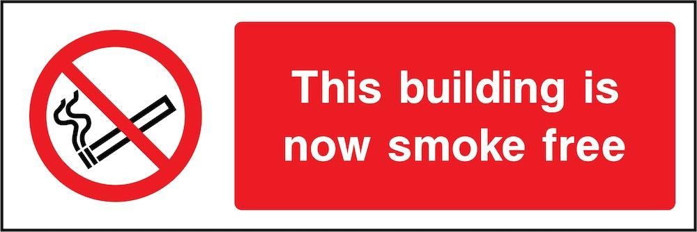 Sign text: This building is now smoke free.