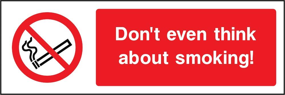 Sign text: Don't even think about smoking.