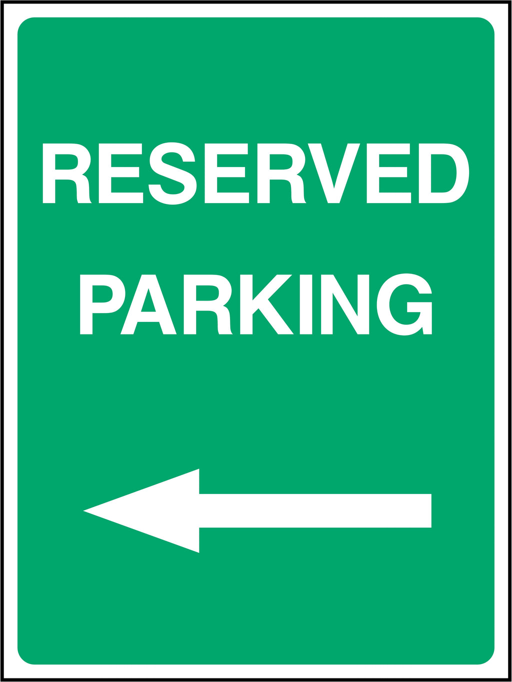 This bold, green parking sign ensures that directions to reserved parking spaces are highly visible. Ideal for businesses operating within any industry, this sign is perfect for companies or apartments with onsite parking.