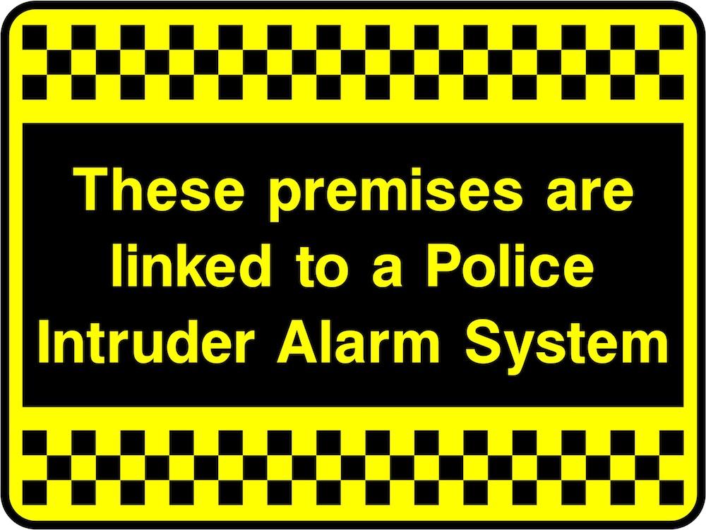 Sign text: These premises are linked to a Police Intruder Alarm System.
